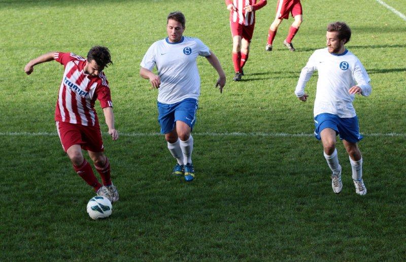 Glück hatten die Gastgeber als nacheinander Daniel Arnold und Ingo Rastetter den Ball nicht unter Kontrolle bringen konnten und Schlußmann Maximilian Weber den Schuß von Erhan Sariisik zur Ecke klären konnte. Nichtsdestotrotz war die SG in der ersten Halbzeit die spielbestimmende Mannschaft und konnte verdientermaßen fünf Minuten vor der Halbzeit erneut in Führung gehen. Webers Abschlag kam zu Dominik Horny, dieser lief auf das Jöhlinger Tor zu, spielte Doppelpaß mit Marco Schäfer und überwand den Jöhlinger Torwart Raphael Gohla.