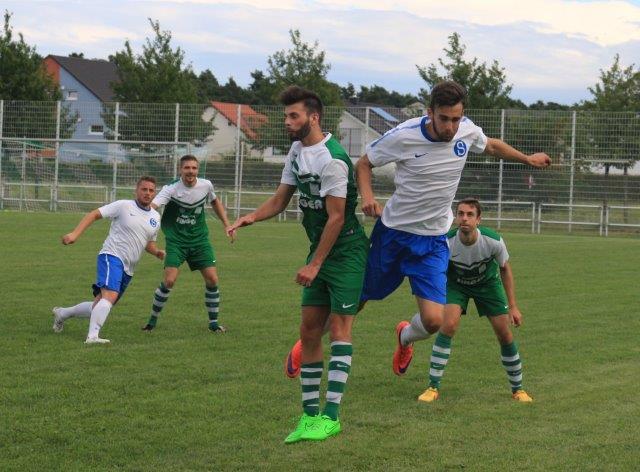 Bereits der erste Angriff führte zum 1:0: Nach einer Flanke von rechts konnte der freistehende Sascha Mayer unbedrängt einköpfen. Trotz des frühen Rückstands versuchte die SG zumindest in der Anfangsphase mitzuhalten. Nach Vorarbeit von Alexander Schmidt und Sebastian Würz verpaßte Sebastian Weber nur knapp. Nach einer Viertelstunde wurde Weber im gegenerischen Strafraum von den Beinen geholt. Marco Schäfer verwandelte den fälligen Strafstoß sicher zum 1:1. Aber schon im Ggeenzug gelang Kevin Clussmann die erneute Führung. SG - Torwart Maximilian Weber machte zwar das kurze Eck zu, Clussmann schoß in's lange. Noch vor der Pause erhöhten die Gastgeber durch Manuel Juchacz und Christian Werner auf 4:1. Die Stupfericher hatten ebenfalls einen weiteren Treffer zu verzeichnen, aber Webers Tor wurde wegen einer Abseitsstellung nicht anerkannt.